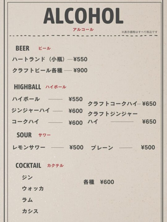 メニュー表は公式Instagramから引用しております。