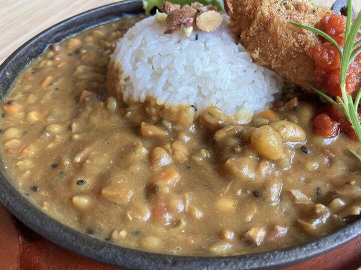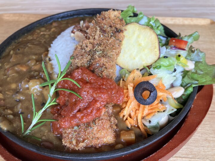 お店のおすすめは、具材たっぷりのスパイスカレー。マリネやお肉も盛り付けられた贅沢なカレープレートになっています。🍛