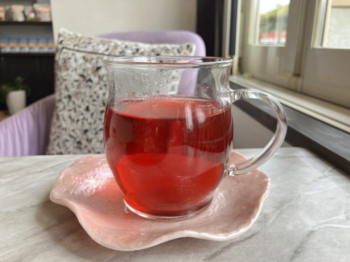 ハーブティーは、特に女性に大人気のティー☕ローズの香りとかわいいピンク色に癒されるひとときを楽しんでみてはいかがでしょうか☺