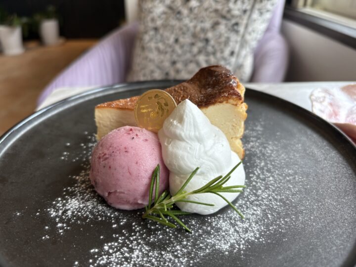 人気があるのは、「バスクチーズケーキ」。グルテンフリー素材で、優しい甘みと濃厚な味わいが特徴✨