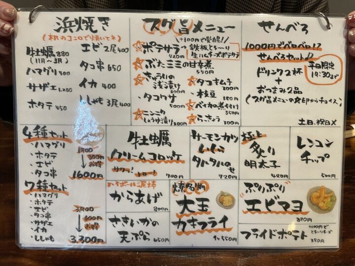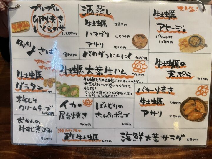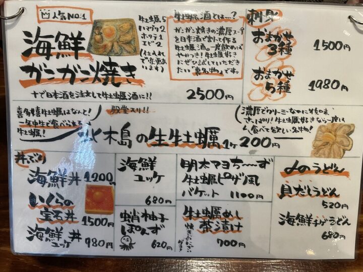 一年中牡蠣が食べられると人気のお店で、夜は牡蠣を中心とした居酒屋メニュー、昼はボリュームたっぷりおむすびランチがいただけます🍙