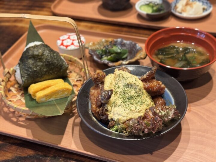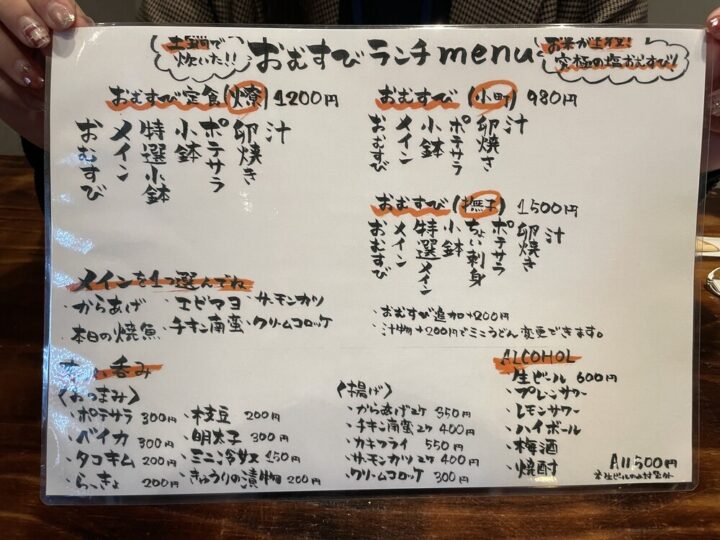こちらは小鉢が1種類になりますが、おむすびとメインがボリューミーなので、女性や少食の方にはちょうどいいかもしれませんね!お値段も1,000円以下とリーズナブルです👌