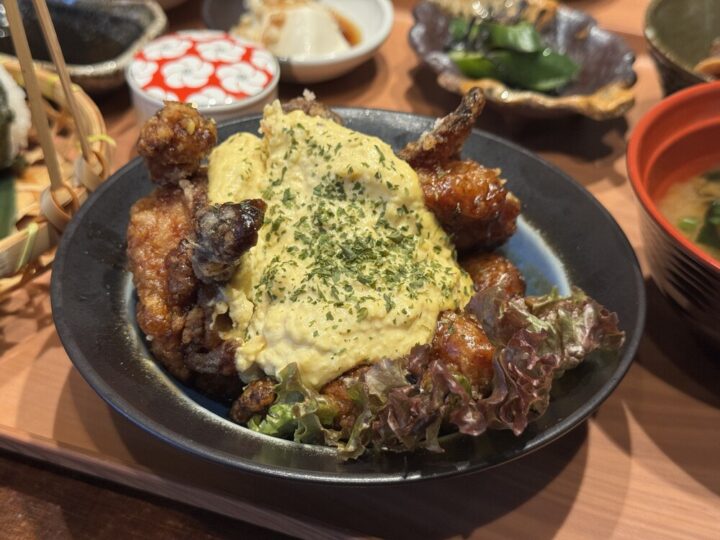 夜メニューのからあげがベースになっていて、タレも濃いめでしっかりしたお味なので、お昼からお酒が欲しくなるかも🤭