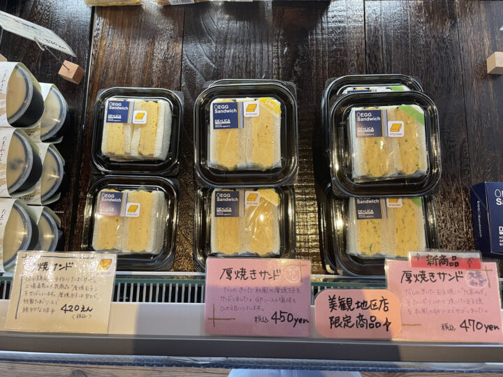 直売所の人気商品「厚焼きサンド」は、甘めのずっしり玉子が絶品なんですよね~!こちらでは定番のサンドに加え、美観地区店限定のサンドも販売されています!