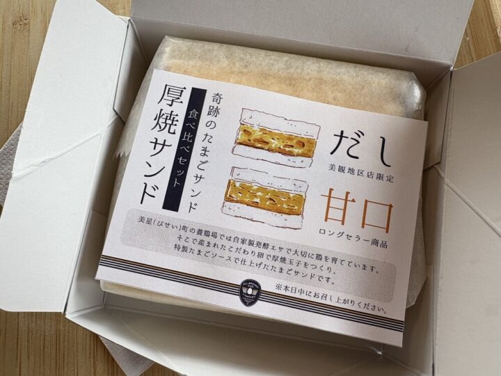 この「甘口」と「だし」の厚焼サンドが一つずつ入っている、食べ比べセットをいただきました😋