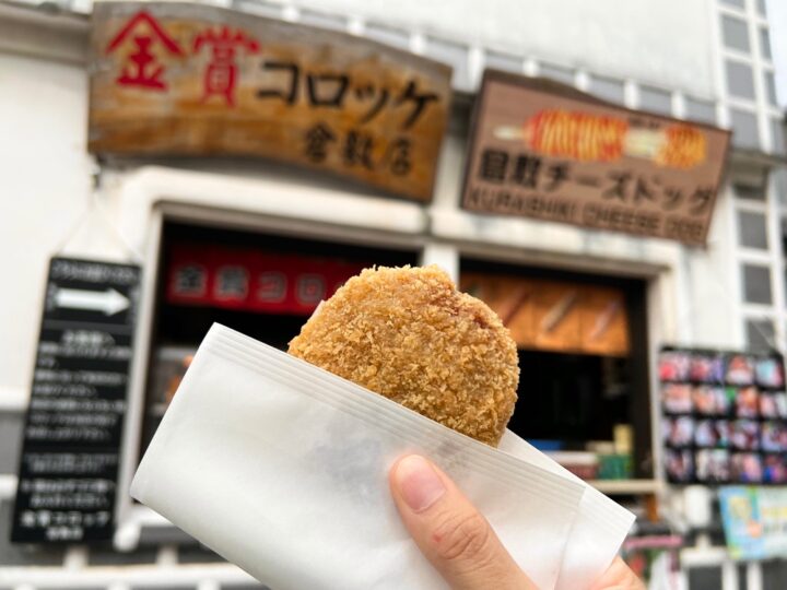 おすすめの食べ歩きグルメのひとつが本町通りにつながる道沿いにある「金賞コロッケ」!