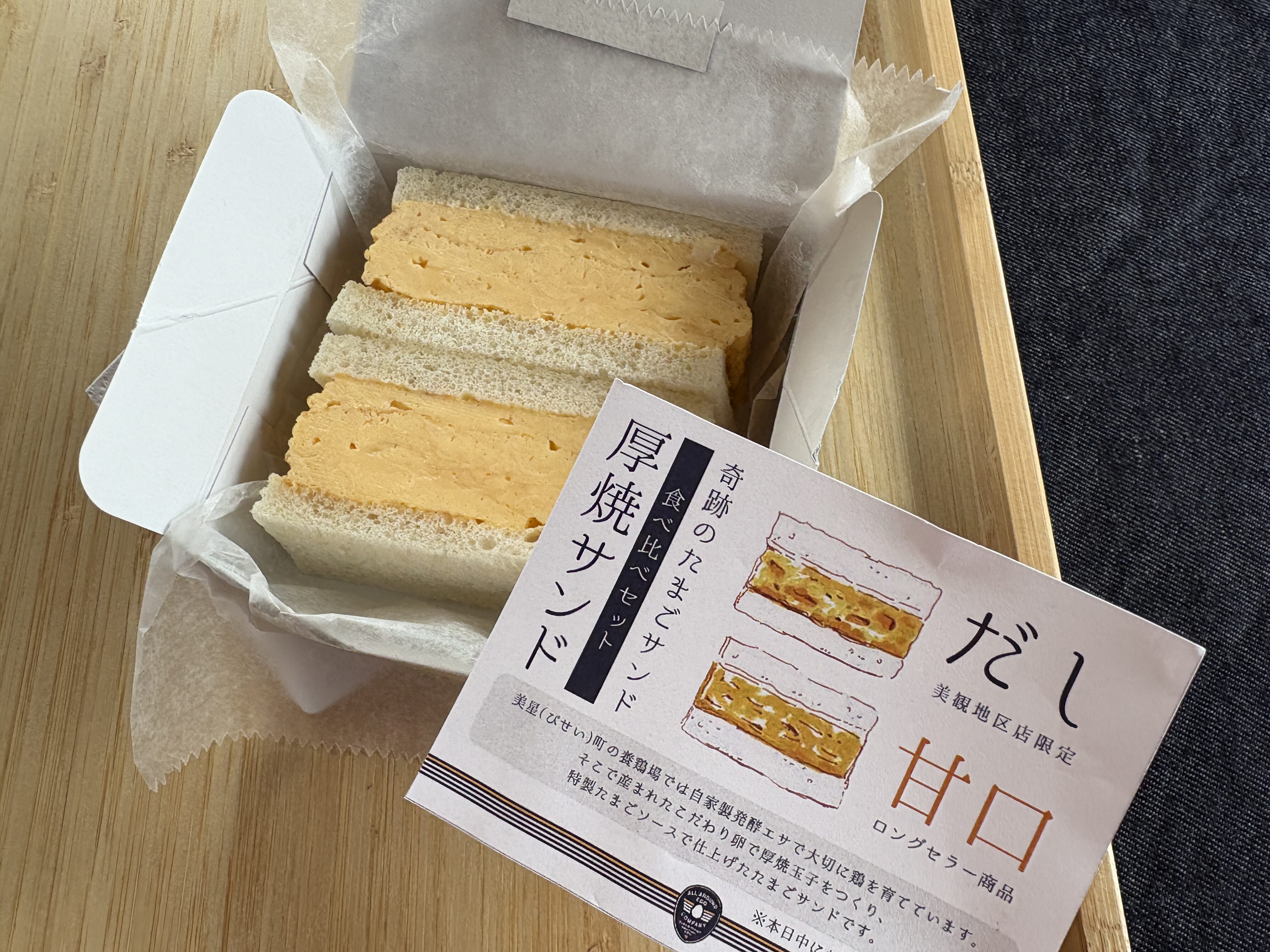 だしのたまご焼きと甘口のたまご焼きの2種類の厚焼きサンドを両方味わうことができる贅沢なボックス✨ 数量限定なので、早めの来店がおすすめです。🥚