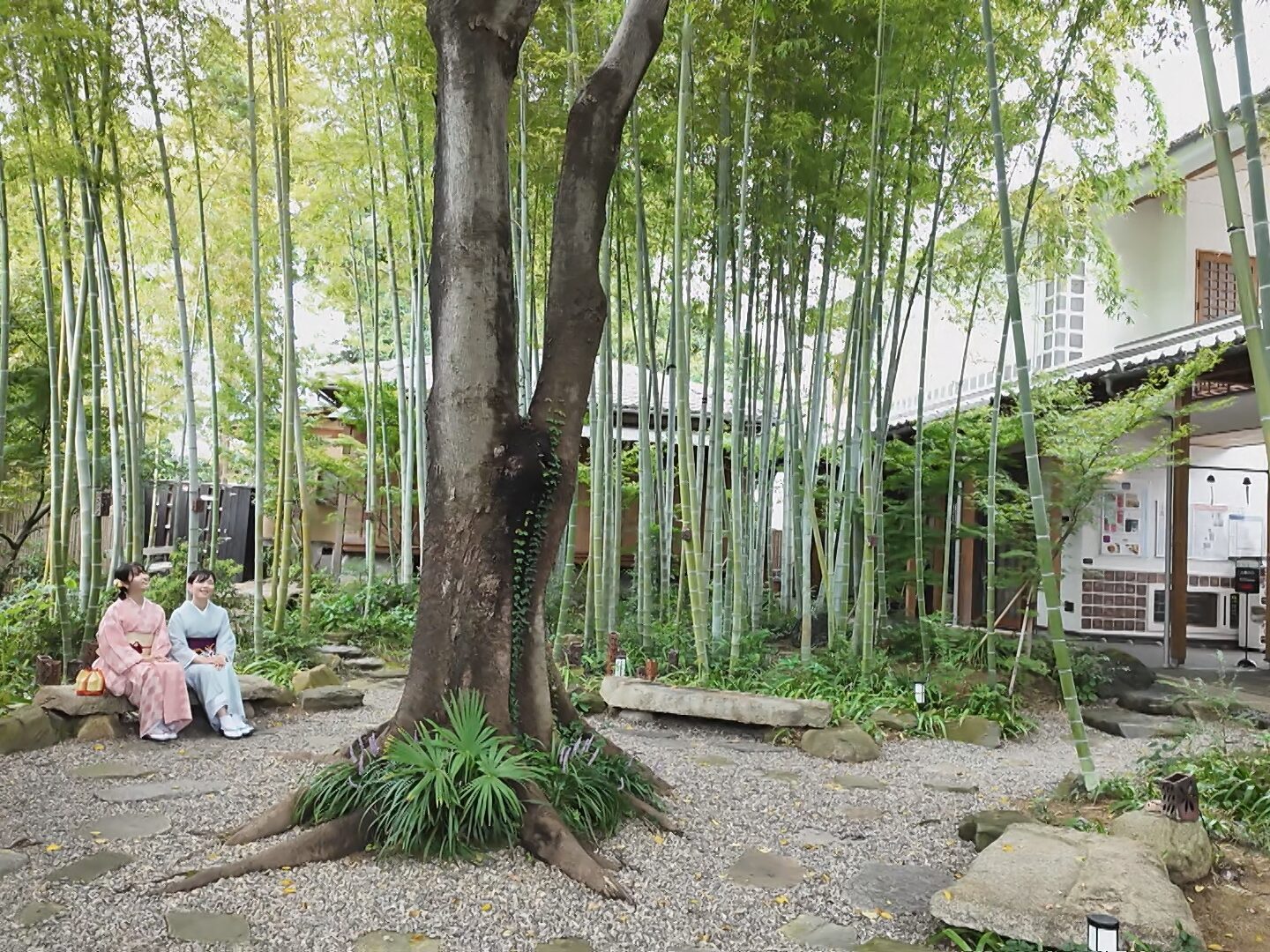 くらしき宵待ちGARDENの奥に進むと、竹林が立ち並ぶ庭園にたどり着きます。
