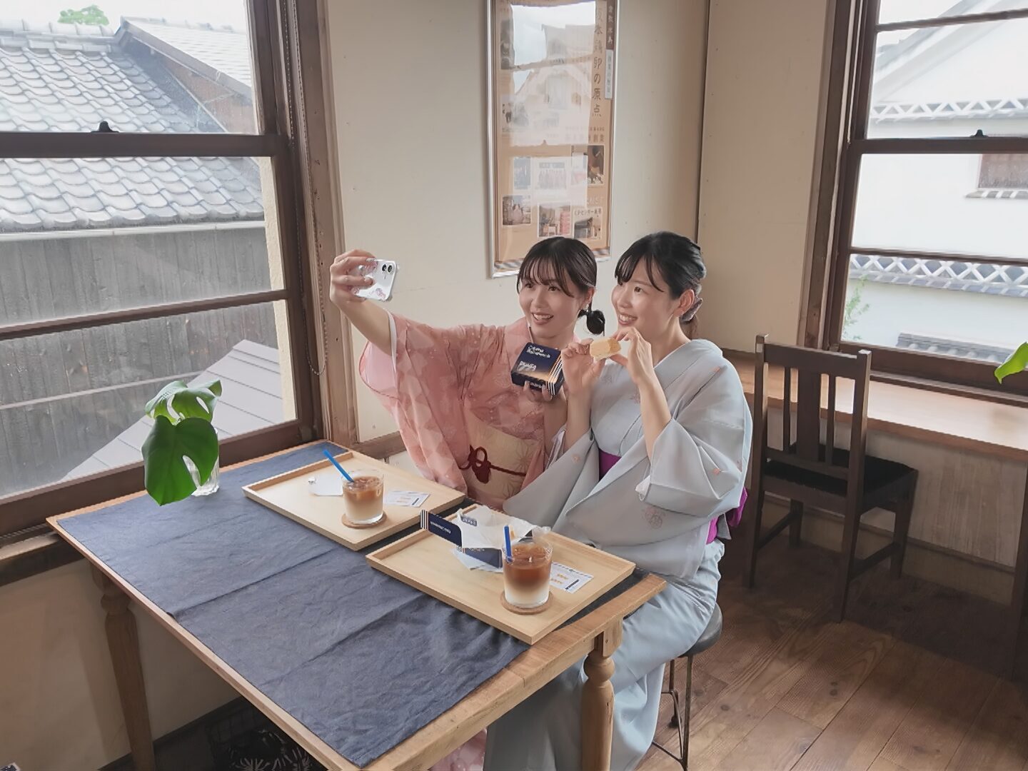 「倉敷着物小町」を出発して向かった先は、カフェやギャラリーなどが集結している「本町通り」。老舗店はもちろん、新しいお店もたくさんできて人気を集めています♪