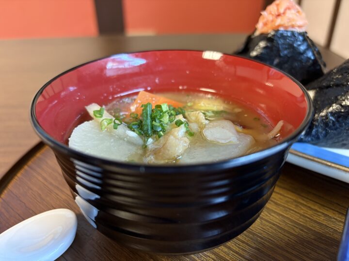 豚汁にも、連島れんこんなどの岡山県産の食材がたっぷり!おにぎりとの相性もばっちりです✨