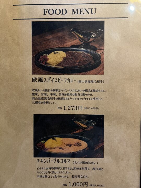 「欧風スパイスビーフカレー」はピリ辛ですが、辛みが少ない「チキンバーブルコルマ(1100円)」という北インドの白いカレーもあるのでぜひ食べてみてくださいね!🥄
