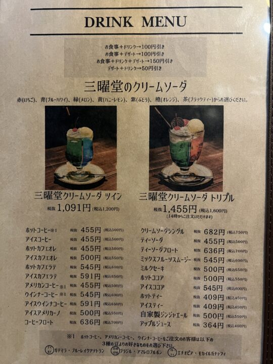 なんと「喫茶 三曜堂」では、選べる3色のクリームソーダを味わうことができるんです!!!