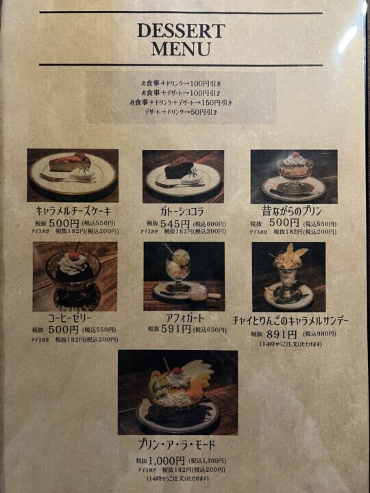 カフェメニューには、話題のトリプルクリームソーダをはじめ、プリンアラモードやケーキなど豊富な種類のドリンクとスイーツがあります☕