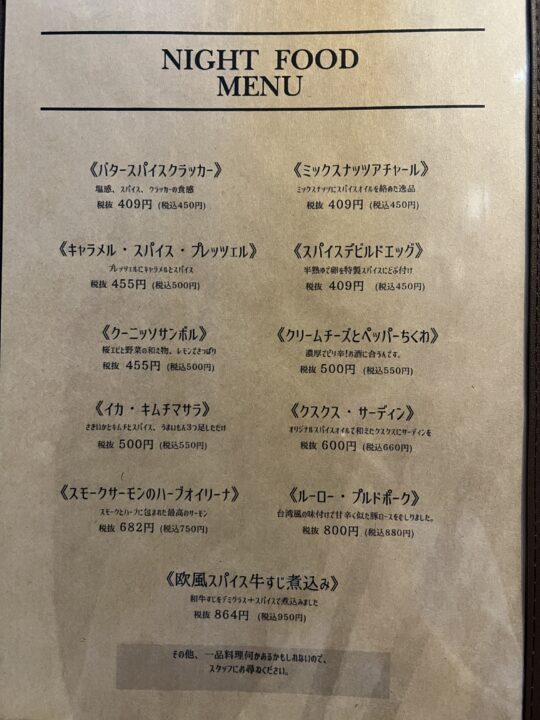 金曜・土曜の18:00~21:00限定で営業している夜喫茶は、カフェメニューに加えて、アルコールドリンクやおつまみメニューも充実しています。🌙