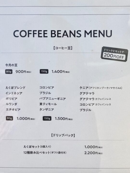 「えくぼ珈琲」では、12種類以上の珈琲豆を扱っているのが珈琲好きさんにおすすめのポイント!