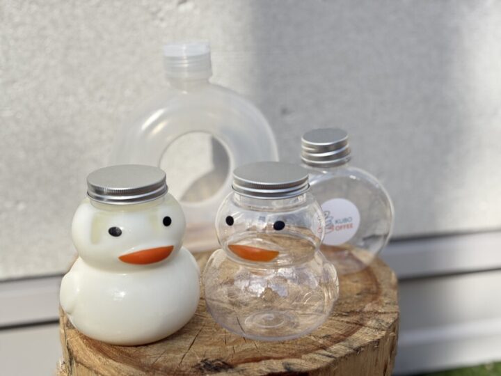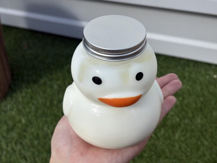 お子様が喜ぶこちらの「とろけるフルーツミルク」は選べるボトル付きのドリンクで、アヒルやドーナツ型のものなどお気に入りのボトルに入れてもらうことができます。💗