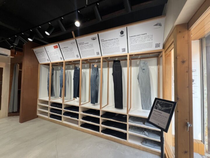 ギャラリーは、国産デニム発祥の地・児島が誇るジーンズに触れたり穿いたりできる体験の場となっています。観光客の方はもちろん、ジーンズを詳しく知りたいという方にも人気がありますよ💗