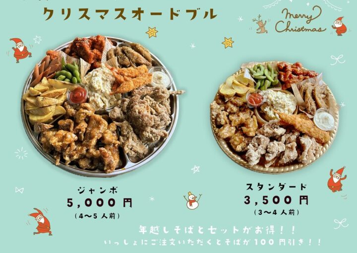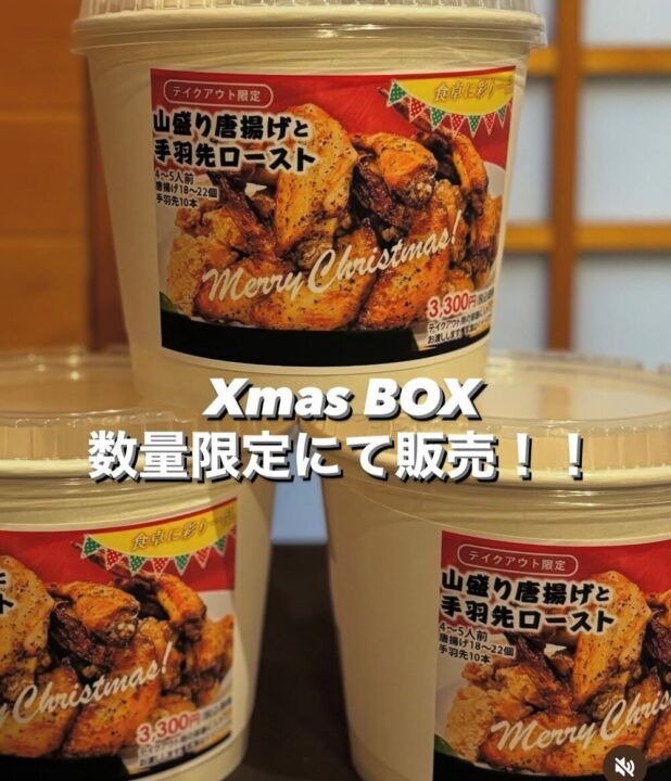 お店はうどん屋ですが、今年のクリスマスには山盛り唐揚げ20個前後と手羽先ロースト10本が入ったBOXが販売されますよ~!