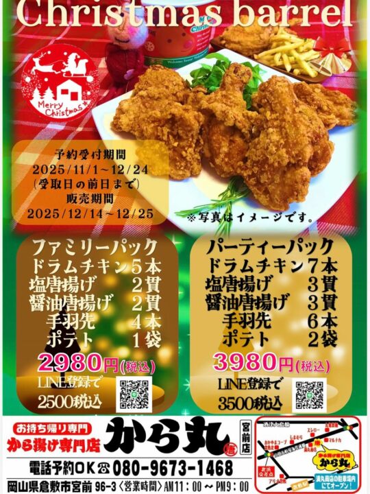 今回は大切な人と過ごすおうちクリスマスディナーを彩る倉敷市周辺の“クリスマスオードブル”と“クリスマスチキン”を地域別でご紹介していきます✨
