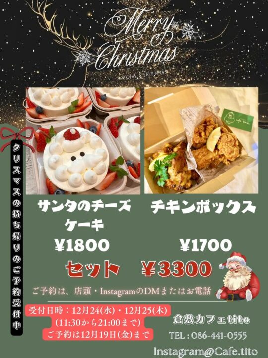 このお店からは可愛らしいサンタのチーズケーキとチキンボックスが登場していますよ~💖