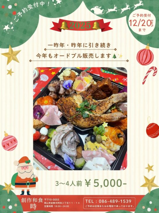 倉敷市阿知にある「創作和食 時」でもオードブルが販売されますよ~!※写真は去年のものです。