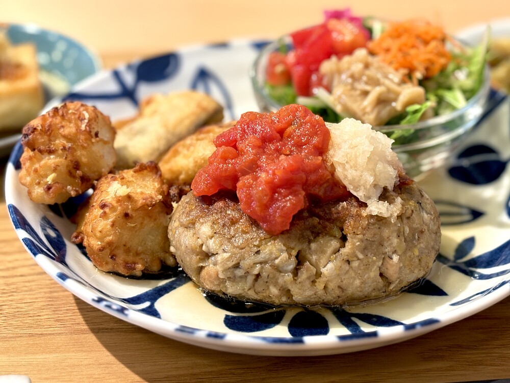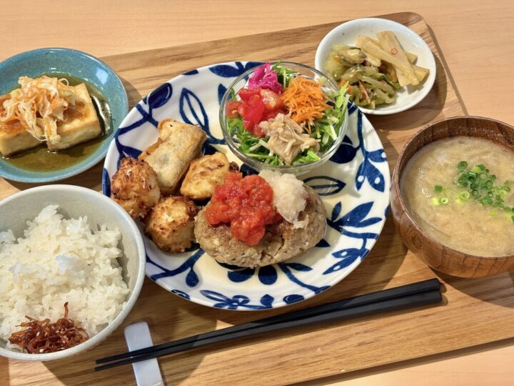 こちらが、ヴィ―ガンランチで人気のある「べジハンバーグ定食」。
