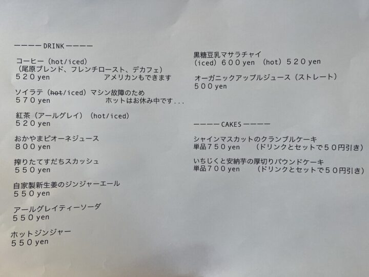 ご紹介したランチメニューの他にも、カフェタイムにはコーヒーや自家製ジュース、フルーツを使ったケーキなどがあります🍰