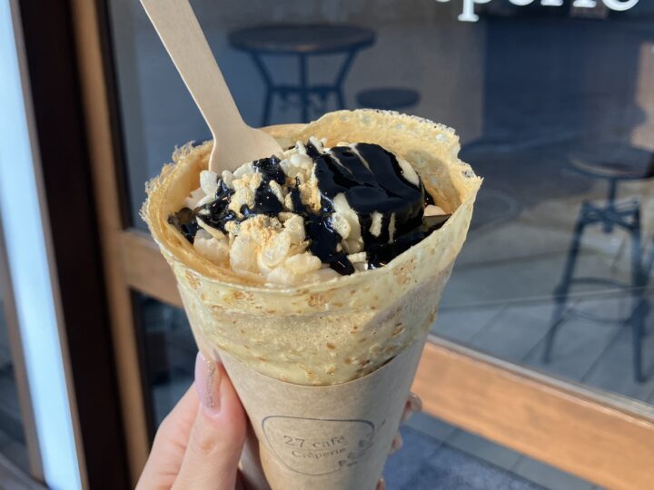 クレープの中身は生クリームやアイスが層になっているので、食べるごとに違う味が出てくるもの味わうときのお楽しみポイント!
