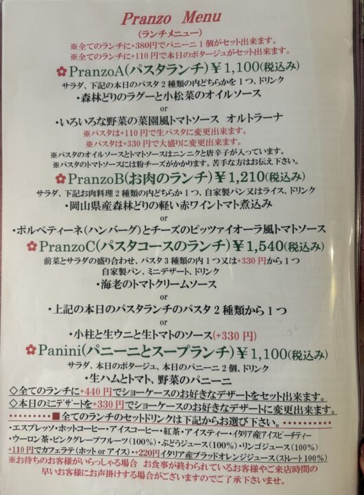 パスタコースのランチにはミニデザートが付いていますが、それ以外のランチメニューにも+440円でデザートを付けることができますよ~!🍰