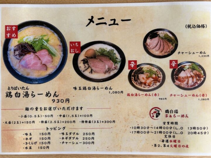 ぜひ、倉敷市水島に訪れた際は鶏白湯らーめんを味わってみてくださいね~!🍜