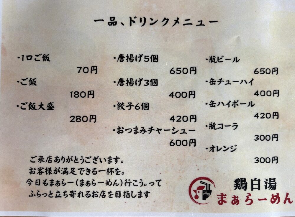 「鶏白湯まぁらーめん」はその名の通り、鶏白湯らーめんの専門店。🍜