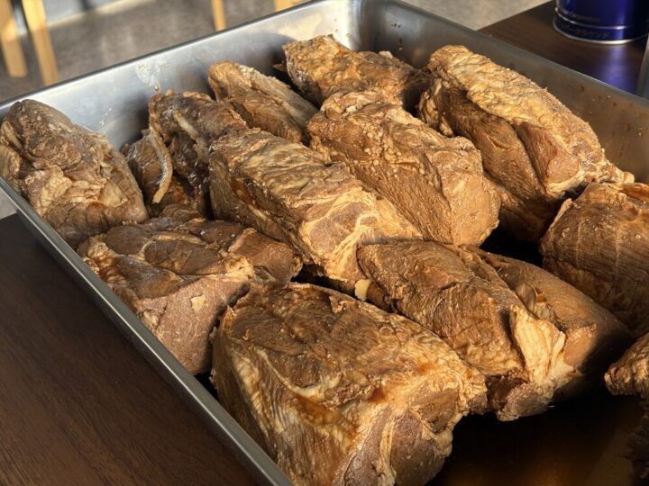 豚肩ロースの塊をオーブンでじっくりと焼き、外にしっかりと味をしみこませ、中はお肉のしっとり柔らかい食感という、焼き方にこだわって手作りしているんです👀