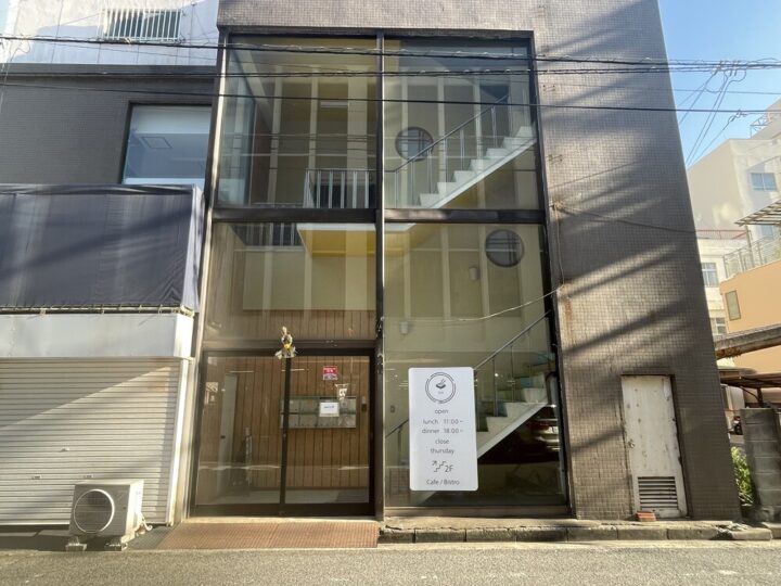 ガラスの壁が印象的なこちらの建物、階段を上がって2階へ行くと、