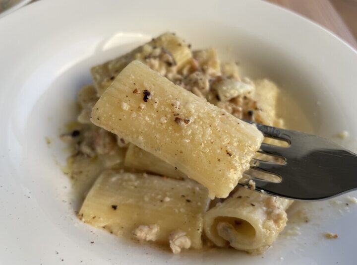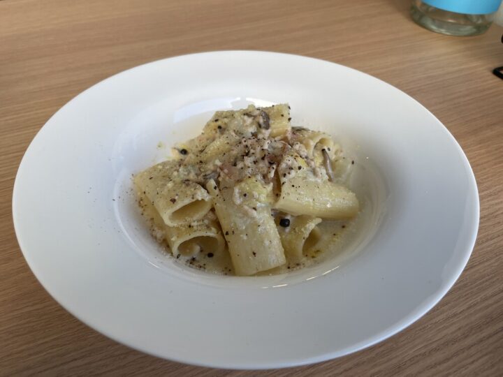 なんだかあまり見かけない形状のパスタ🤔筒状のリガトーニというパスタだそうです!もちもちとした食感でソースもよく絡み食べ応えがありました!
