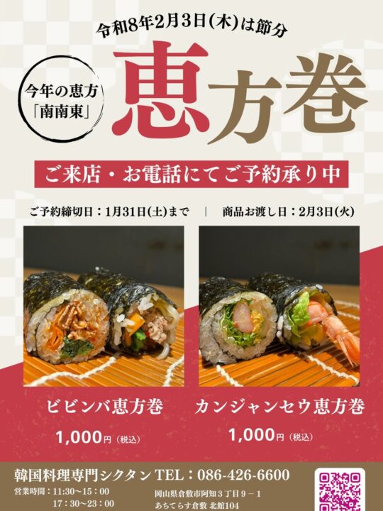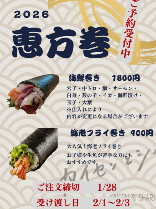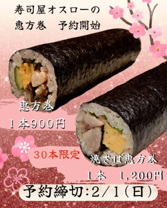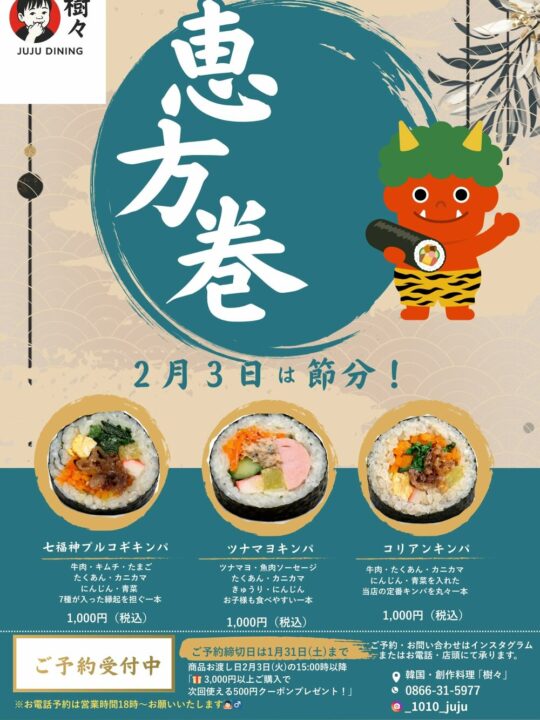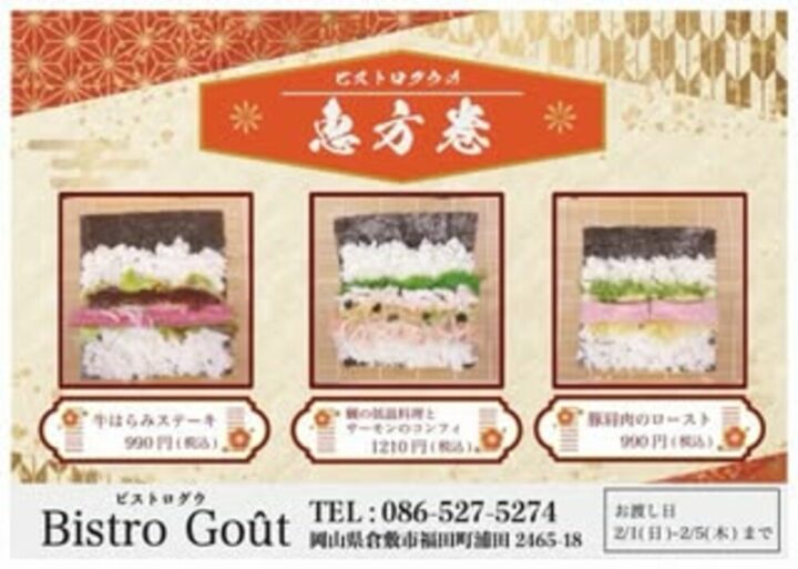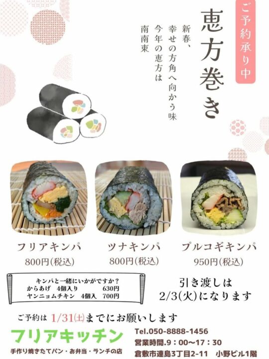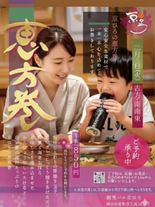 倉敷周辺の飲食店で恵方巻きの予約販売を行っているお店をまとめました📢