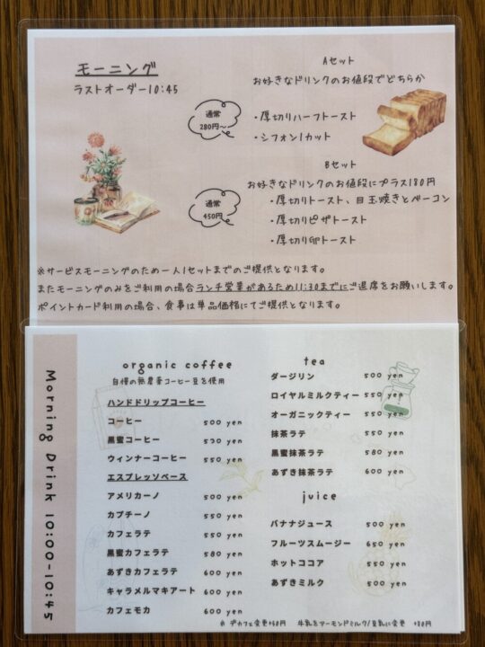 お店がオープンする10時~10時45分のラストオーダーの時間まではモーニングタイム🌞