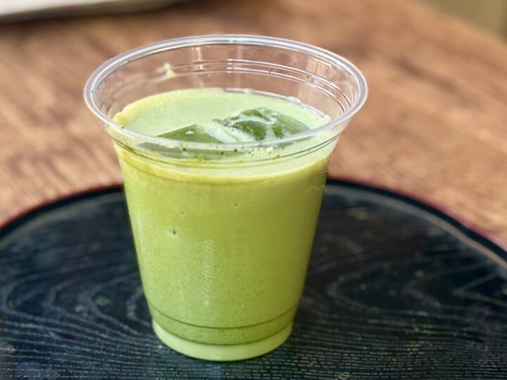 抹茶豆乳、高梁産さとうきびを原料にした黒蜜を使ったドリンク。