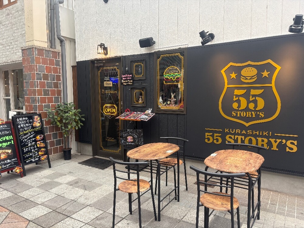 2023年3月に倉敷センター街にオープンしたハンバーガー&ステーキ専門店「55 STORY’S」。
