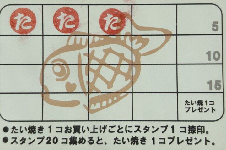 たい焼き1つ購入ごとに1つスタンプが貯まるポイントカードもあります💳✨
