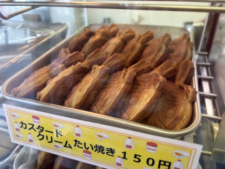 お店の中に入るとたい焼きがずらり!王道の粒あんをはじめ、カスタードクリームやりんごなど様々な味から選ぶことができます🍃