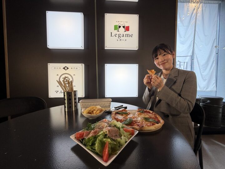 旅の締めくくりは、倉敷駅前のあちてらす倉敷南館にある『イタリアンバル Legame -レガーメ-』へ !新食感フードコート「キキメシ横丁」内にある、カジュアルで活気あふれるお店ですよ~!