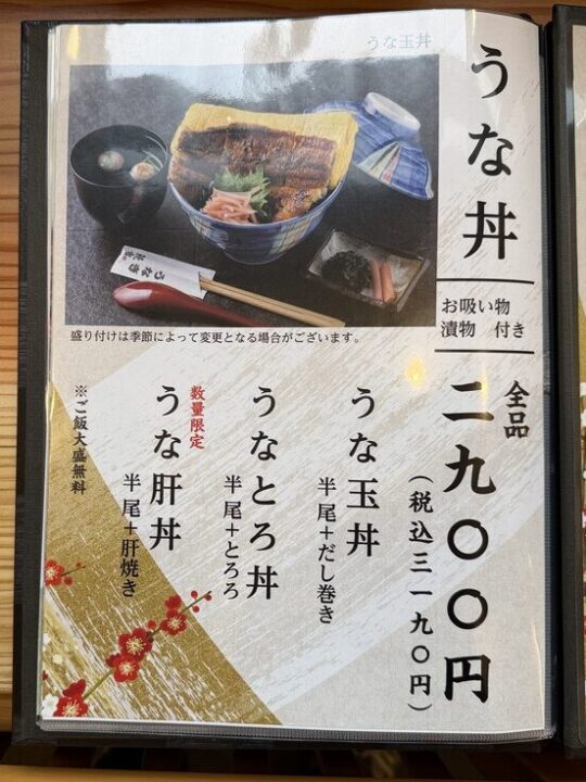 うな丼はすべて3190円!!