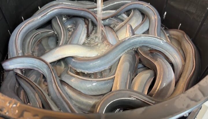 うな市では活鰻(かつまん)と呼ばれる活きたうなぎが仕入れられています。