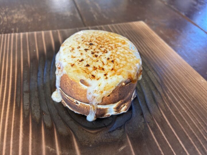 ジャージーミルクアイスの上にレアチーズケーキが乗っていてとにかく濃厚!目の前でバーナーであぶってクレームブリュレのように仕上げてもらえるので、食べる前には見て楽しむことも♪