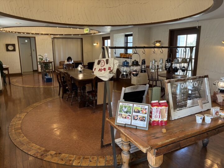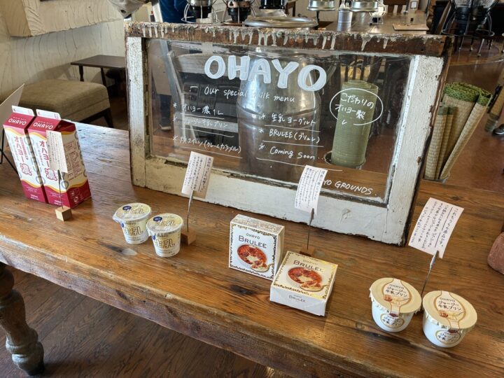 落ち着いた雰囲気の店内、入ってすぐのところにはオハヨー乳業の人気商品が展示してあります!