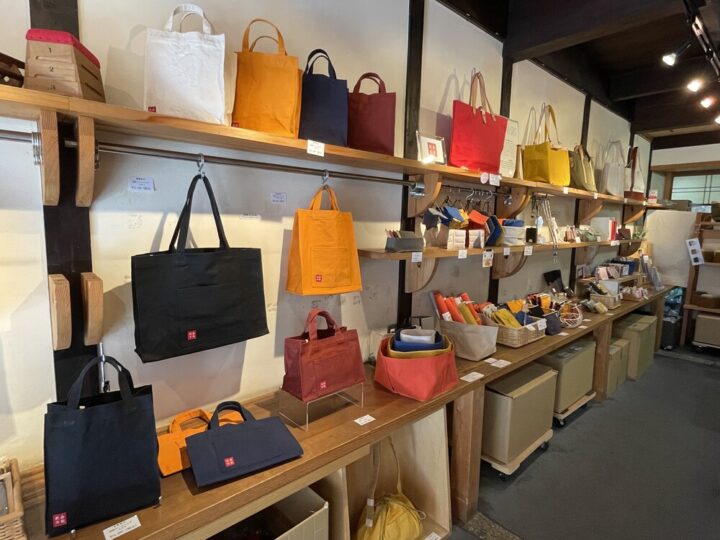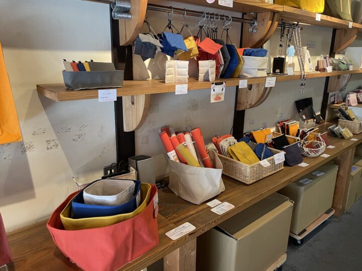 倉敷帆布の商品が並ぶ落ち着いた雰囲気の店内