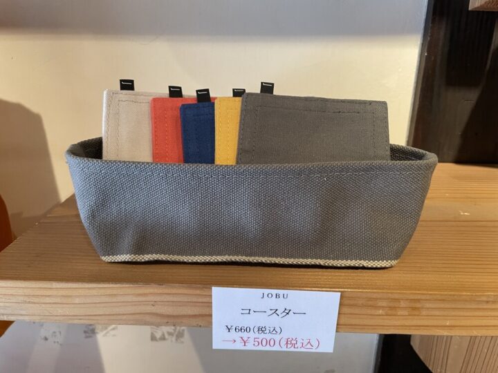 JOBUシリーズのコースターはしっかりとした生地感で、とにかく丈夫な印象でした!