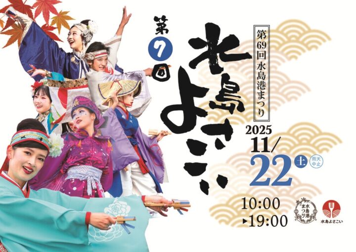 今年で7回目を迎える「水島よさこい」、県内外から集まった49のチームが、個性豊かな衣装と独創的な振り付けで、水島の街を熱く盛り上げます!もちろん屋台やキッチンカーなどのグルメも充実していますよ😉
