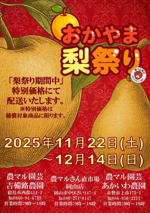 農マル園芸「おかやま梨祭り2025」 11月22日~12月14日