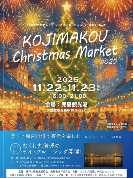 11月22日(土)、23日(日・祝)の2日間、児島観光港周辺エリア一帯で「KOJIMAKOU Christmas Market 2025」が開催されます。